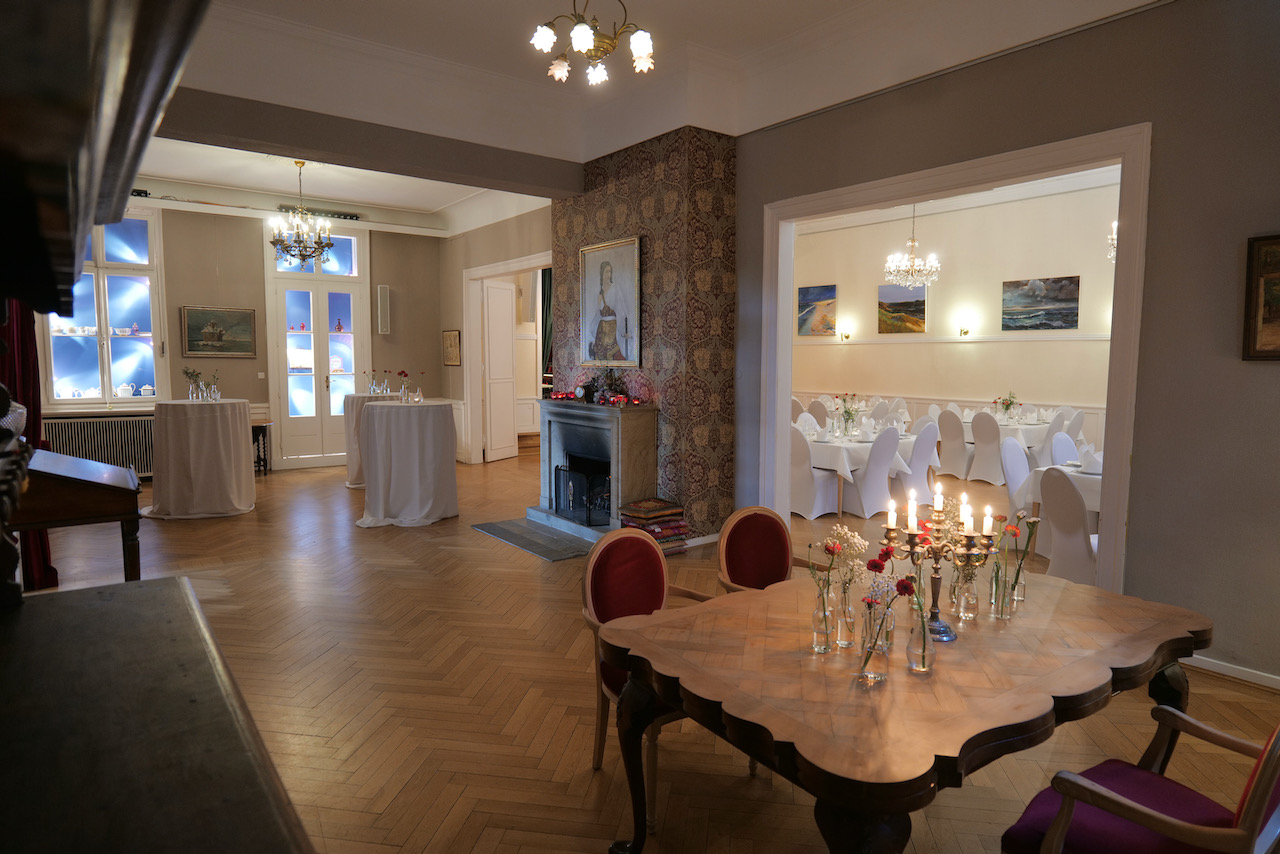 Die stilvollen, festlichen Räumlichkeiten, die überhohe Kassettendecke, das edle Ambiente der Kulturvilla bieten die ideale Kulisse für Ihre Hochzeit, Feier, Firmen- oder Kulturveranstaltung. Geeingnet auch für Vorträge, Podiumsdiskussionen und Ehrungen aus Politik, Kirche, Wissenschaft und Wirtschaft. Auf der erhöhten Bühne öffnen Sie den Vorhang für Ihre Gäste. Professionelle Licht- und Tontechnik, eine Großleinwand sowie ein Konzertflügel stehen zu Ihrer Verfügung. Der neu gestaltete Außenbereich bietet sich für Empfang, Grillbuffet und eine freie Trauung an.